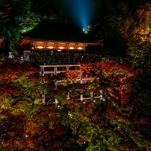 Киёмидзу-дэра — храм, стоящий на склоне горы без единого гвоздя. Его терраса словно парит над Киото, а у подножия — улочка Киёмидзу-дзака, где лавки ремесленников хранят дух старого города.