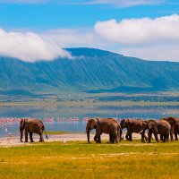 🌺 Нгоронгоро — вулканическое чудо Африки. Кратер диаметром до 21 километра и глубиной 610 метров —это крупнейшая неповреждённая кальдера на Земле. Когда-то он был огромным вулканом, а теперь представляет собой зелёную равнину, окружённую лесистыми склонами.