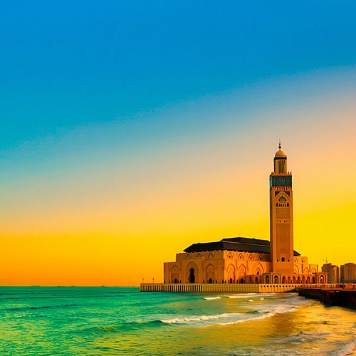 🌺 Вы увидите район Хабус с его аутентичной архитектурой, бульвар Корниш — центр вечерней жизни у океана, и снаружи осмотрите грандиозную мечеть Хасана II. Её минарет поднимается на 200 метров, а лазерный луч указывает путь к Мекке на 30 км.